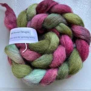 Then, this cheerful 100% Lonk braid, described as green/red/pink. The green is barely there, and a bit browny. I might take it out when I unwind the braid, depending on whether it looks okay.