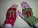The Pi Mitts I made for Pi Day – 14th of March, or 3/14 in American. As in 3.14? Because I have a bit of an obsession with π, as the numerati will deduce from the quote under my avatar. Utterly wasted on the little darlings at school, who are largely unaware of the symbol, and the fact that the decimal places continue