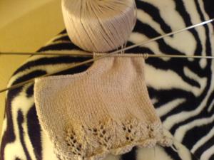 Her questions were quite complex, possibly made so by a difference of language, and in the end I had to cast on to check that my reading of the pattern was correct. For handiness, and because it was roughly the right weight, I started off with an apricot cotton – Paccia La Lana Cinzia – which I got in a fire (or possibly bomb) sale in Belfast about 18 years ago. I had tried doing things with it before, but nothing had quite worked. Undaunted, I plugged on with FLS to the point – at the end of the collar/start of the lace – where her questions ended, and was pleased to report that I was correct (as was she, just confused, but then this is about me me me. I don’t know why I have to keep saying it). By then I had invested a substantial amount of time on the project; I thought I might as well use up this stuff after all that time in a box, moving countries with me.