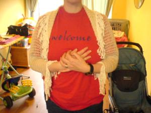 So I continued. I soldiered on with the lace – it wasn’t too hard, especially after I put 15 million stitchmarkers at every repeat. I could even do it without looking, managing half a row or so (there are about 85 giblillion stitches per row…) on the bus. Then I remembered I was doing a maternity tent – sorry, smock effort. Never a good look on one so sumptuously endowed as moi, and thanks to my recent success in vanquishing the Weed, I am packing a smidge more round the waist than I like. So not just huge jugs to make it sit out, but a muffin top to keep it from sneaking back in. By jaze sez I, I’ll need to do something about this.