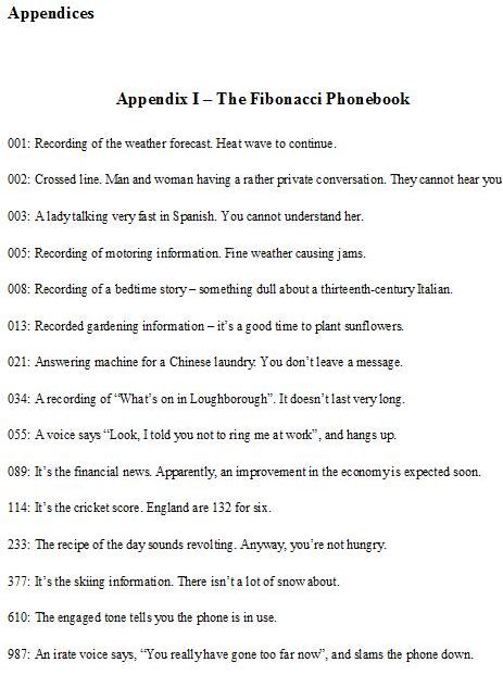 Had the sequence remained in the sphere of population dynamics, it would have been of limited use: none of Fibonacci’s rabbits ever die, for example, and continue to breed unabated by considerations of food supply, or, indeed, the walls surrounding their habitat as described in the original problem. However, the sequence has found applications in such a wide arena that there is a scholarly journal, the Fibonacci Quarterly, is devoted to its academic study. An examination of the L telephone messages reveals some of the areas in which the Fibonacci sequence has been applied: