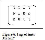 It would be disappointing if this task, which must on average take players more time to complete than any other, were merely some kind of trial and error problem. I searched for more possibilities, but with little success. However, amongst the extra pieces of information I gleaned was that Dodgson had done some research on matrices, or ‘blocks’ as he called them, and had produced a method for finding determinants, known as Dodgson’s Condensation, which remains one of the most efficient to date (Dodgson, 1867). I also discovered, quite incidentally, that a contemporary of his, Sylvester, worked on the determinants of rectangular matrices (Weisstein, date unknown-c). It then occurred to me that the ingredients could be arranged into a rectangular 3 x 4 matrix of letters, with 25 perhaps representing a determinant. Unfortunately, I could go no further forward with this idea – partly because the mathematics is currently beyond me, and partly because there is still a crucial element missing: the key to the matrix. I was unsuccessful in finding a copy of Dodgson’s matrix cipher, which may be the key – assuming, of course, that I am not seeing patterns where none exist.