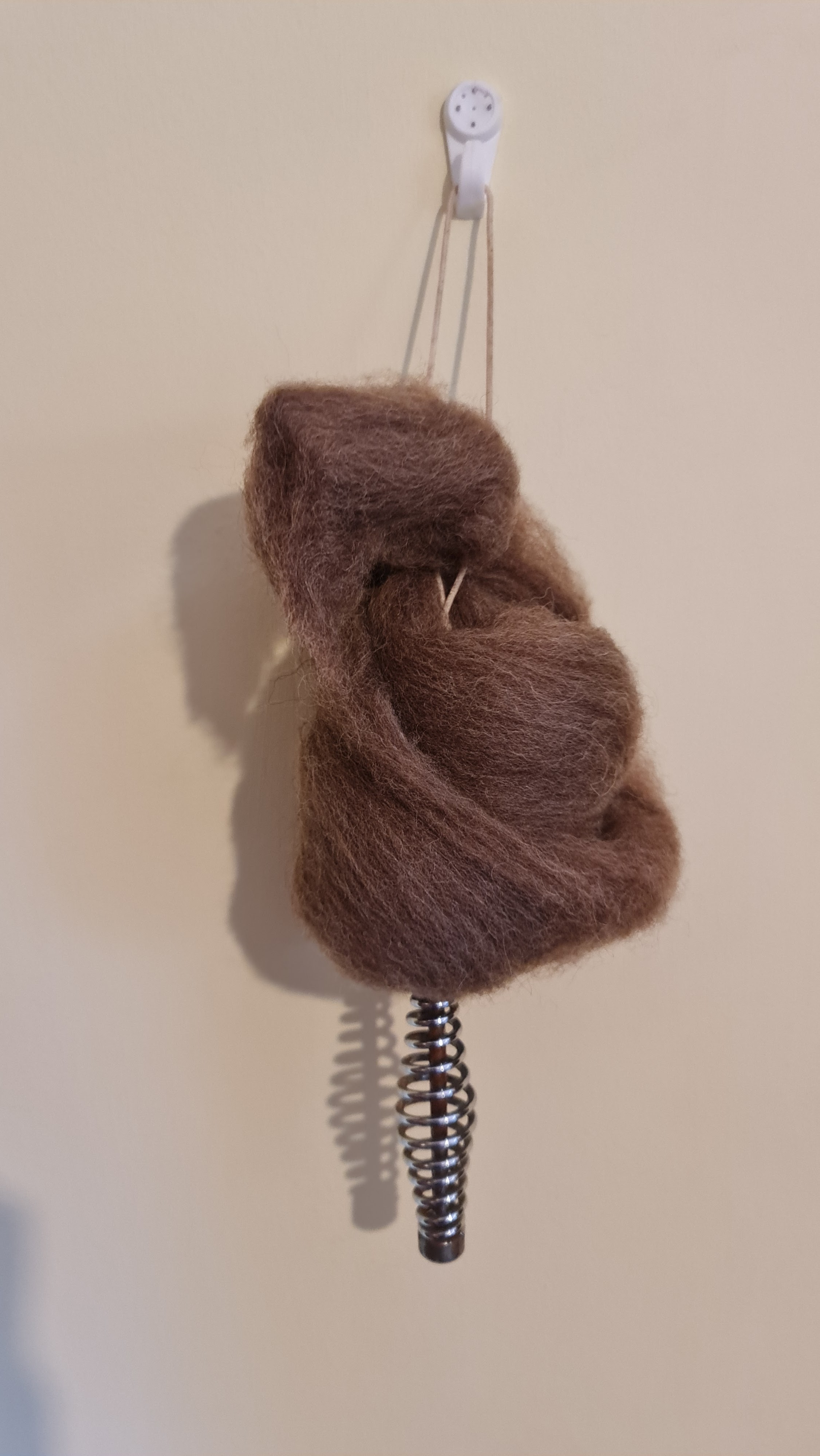 Shetland top (probably moorit) on a wrist distaff.