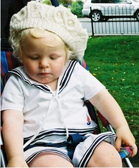 Adam’s mum will not let him wear it, of course. I made the 6-month size, so it should fit him in a month or two, but SIL is obsessed with proving her children are BIG. The older boy, at 7, is wearing teenage clothes, although keeping the clothes on him involves rolling up hems, rolling down waistbands over belts and wearing 3 or more layers of t-shirts etc to fill out the massive sweaters she has the poor boy in. He looks like a badly stuffed scarecrow. He’s certainly tall, but not teenage tall – maybe 10-year-old height. So undoubtedly I’ll hear shortly that the sweater was too tight to go over Adam’s head (despite one shoulder being a button-through). I sent her over a 6-12month outfit when Adam was born, which “dudn’t fut hum” as a newborn. Yeah, right. Madwoman. I told my sister to tell SIL if she didn’t want it, to send it back to me because I could sell it for $75 on Etsy, heh-heh.